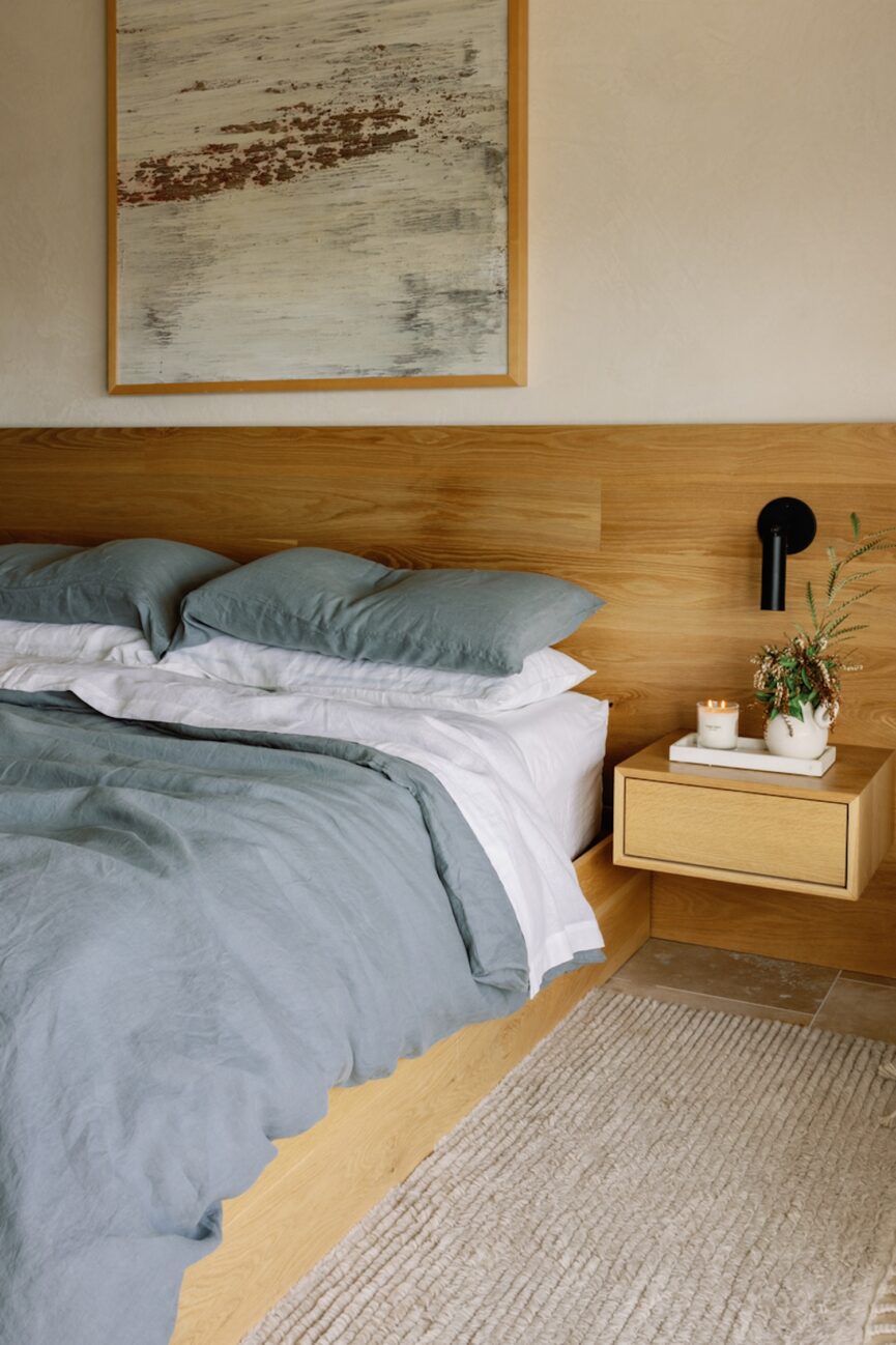Soft blues can also mean darker shades. “Think evening sky, not navy. Softened blues can gently lower heart rate when desaturated,” designer, psychotherapist, and founder of Psychitecture, Dr. Rachel Melvald shares. With a background in both design and psychology, Dr. Melvald recommends thinking of your bedroom like a space that envelopes you. “In 2026, the trend isn’t bold statement walls, rather it’s cocooning, biologically calming tones that help the body downshift into rest and connection,” she says.
