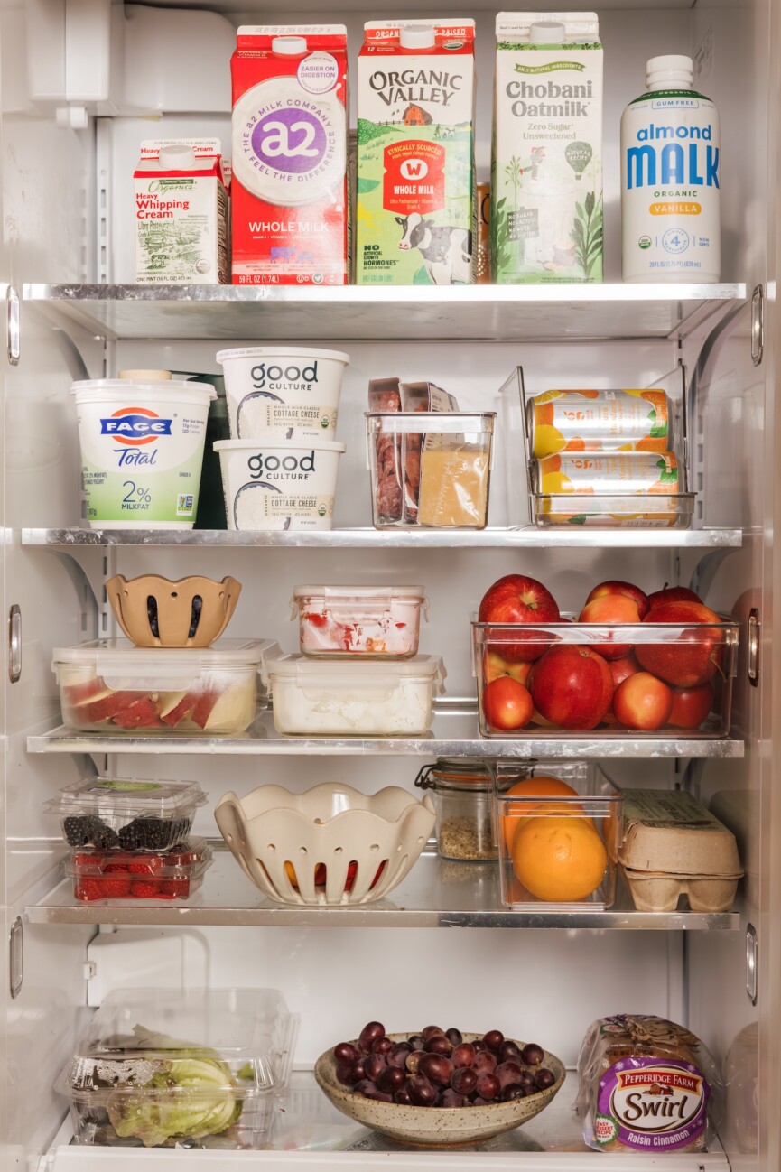 Part of that prep extends into the refrigerator itself. I’ve learned that when the fridge feels cluttered or chaotic, even the best intentions get lost. So after prepping a few basics, I take a moment to reset how everything is stored—grouping like items together, keeping grab-and-go options visible, and creating clear zones that make it easy to see what’s available at a glance. When the fridge feels organized, it becomes a quiet cue to nourish myself rather than default to whatever’s easiest.