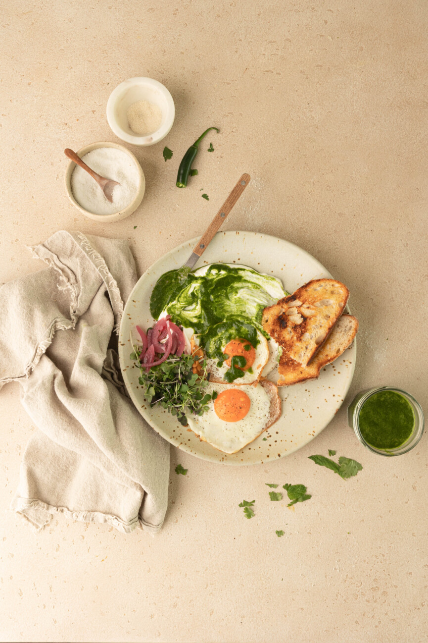 Add it to savory breakfast bowls. I love swirling it into yogurt or spooning it over a savory breakfast bowl—especially something like Turkish eggs. The contrast adds freshness and makes the whole dish feel more dynamic.