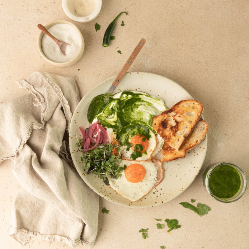 Add it to savory breakfast bowls. I love swirling it into yogurt or spooning it over a savory breakfast bowl—especially something like Turkish eggs. The contrast adds freshness and makes the whole dish feel more dynamic.