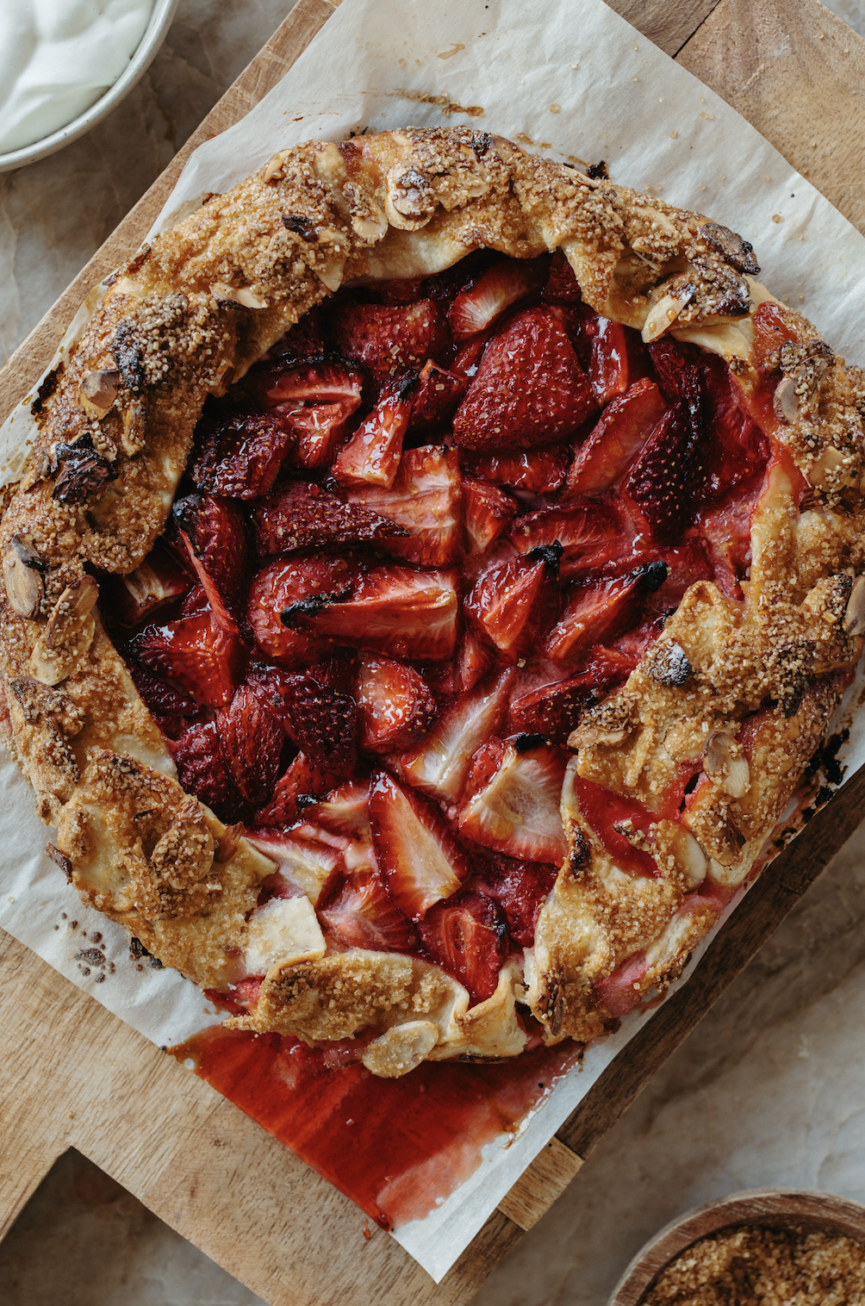 There’s this moment that happens every April when the first truly in-season strawberries show up at the market: I take a bite, and that feeling of spring floods my system. It’s when the pale, flavorless berries that have traveled for a week are replaced by the deep, red, juicy ones that fill the kitchen with the scent of sunshine. That moment is what inspired this strawberry galette—it channels all those feelings and wraps them up into the most gorgeous (and simple) dessert.
