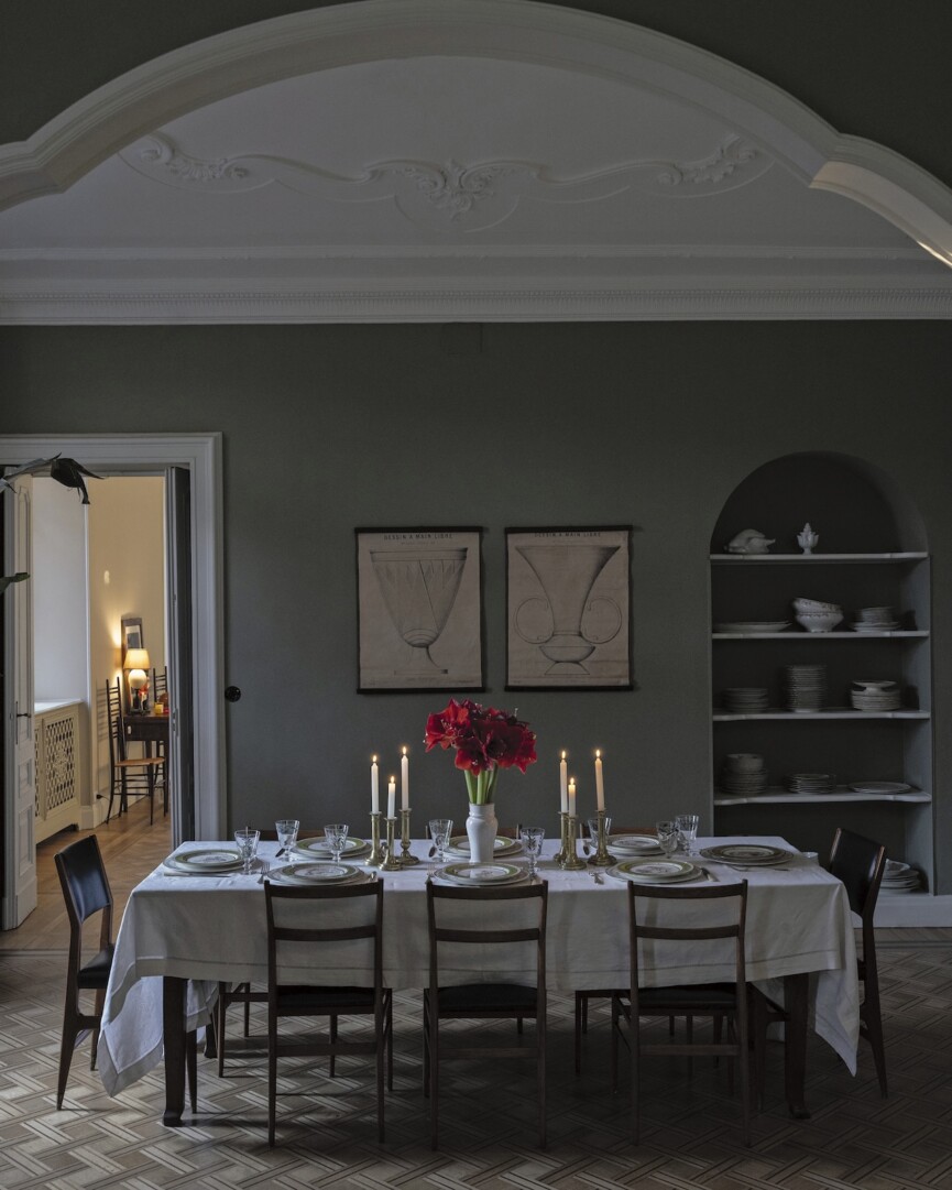Candlelight, everywhere. “It’s not a dinner party without candles—lots of them, at different heights, to create atmosphere.”