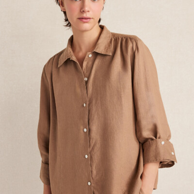 On these mornings, I gravitate toward a linen set: an oversized button-down and cropped pants that feel airy but intentional. Linen has structure without stiffness. The collar sharpens the look; the relaxed cut keeps it easy. I feel composed without feeling formal—comfortable, but dressed enough to move into the day. The silhouette is relaxed, but not careless. Breathable, but pulled together.