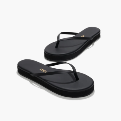 Start with a great pedicure and a minimal pair of black flip flops. Style them with a monochrome white outfit—linen pants and a simple tee—to create contrast. Add black sunglasses, and suddenly the whole look feels effortless, chic, and timeless.